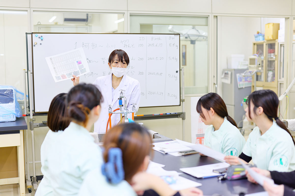 熱意あふれる教員の指導のもと、動物看護に必要な医療知識からペットの栄養学、しつけのアドバイスといった総合的な知識と技術をマスターします。