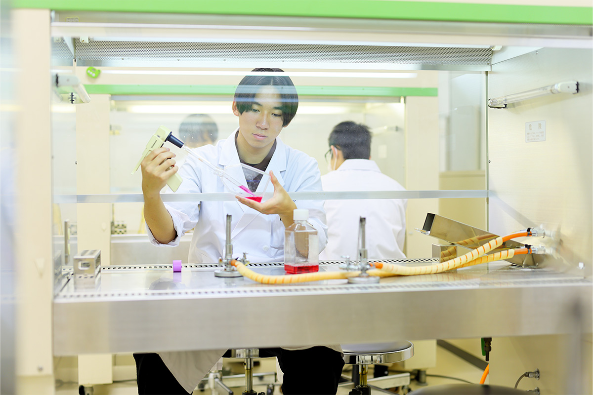 - 細胞や微生物、実験動物の取扱い技術などを習得し、卒業後は医薬・医療分野などで専門技術者として活躍!