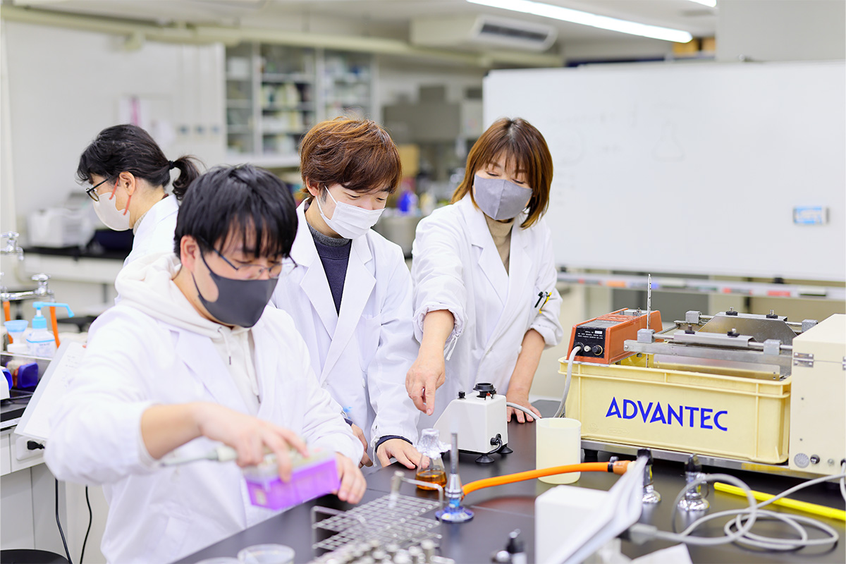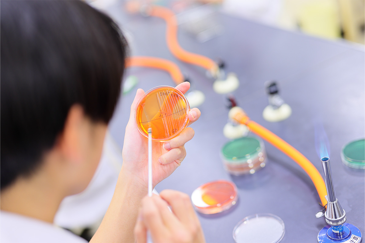 バイオテクノロジーを学ぶ専門的な実習と、資格試験対策や就職活動をサポート。
