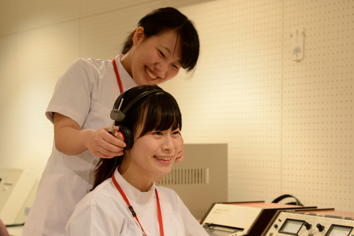 入学後の早期から言語聴覚士に必要なコミュニケーションについて学び、実際の臨床現場で働く言語聴覚士のリハビリを見学。さらに、患者様を「知る」ために、患者様とのコミュニケーションを実践します。