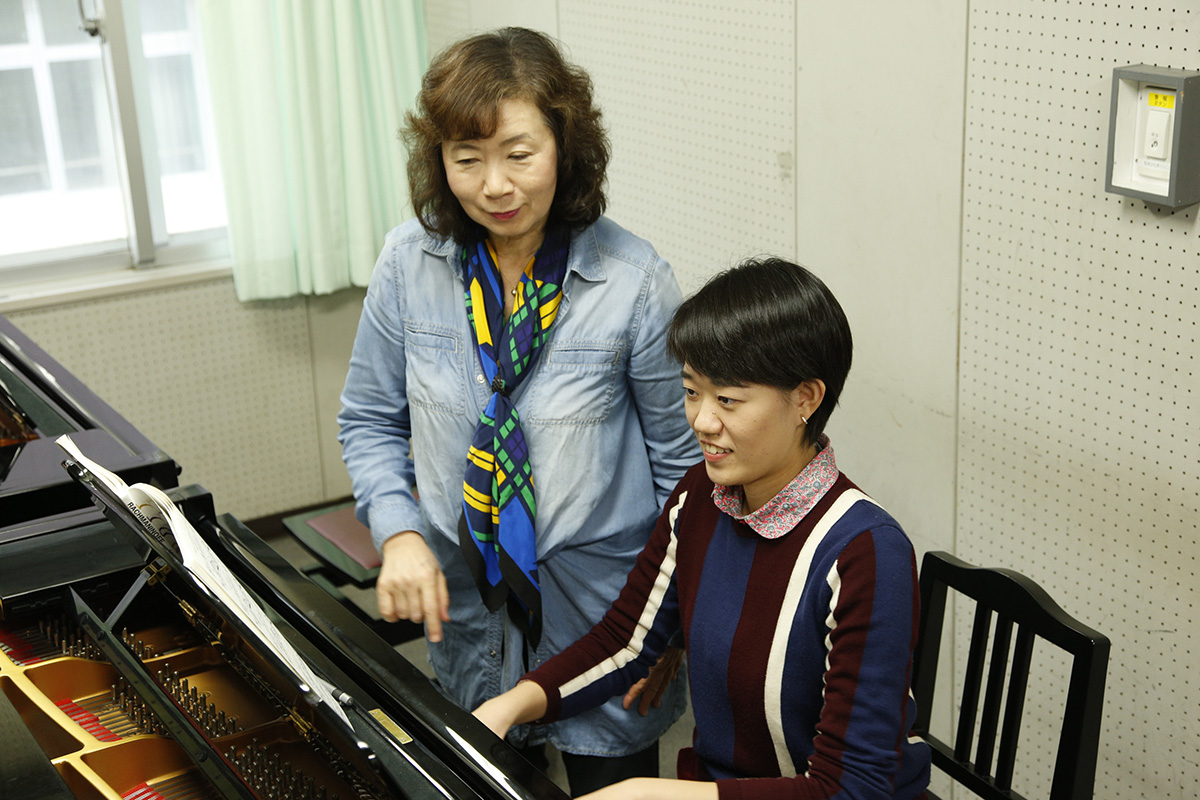 桐朋の実技指導は個人レッスンが中心。一人ひとりを丁寧に指導し、可能性を見いだしていきます。副科実技・第二実技として、他専修の楽器や作曲も学ぶことができます。