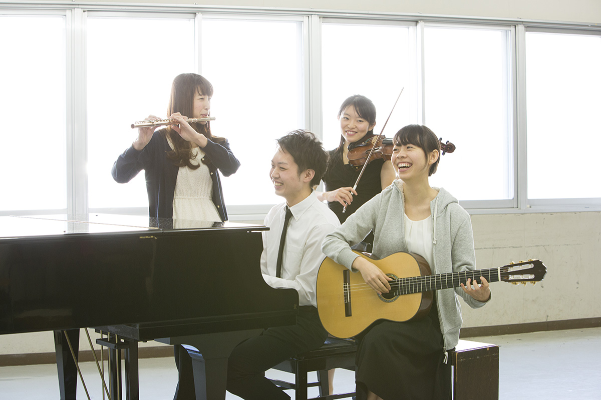 音楽を表現する上で、「他と合わせる能力」「音楽を通じて会話する能力」を大切にしています。専修の枠をこえたアンサンブルや演劇とのコラボレーションなど、小さなキャンパスに閉じこめきれない、大きな音楽の出会いがあります。
