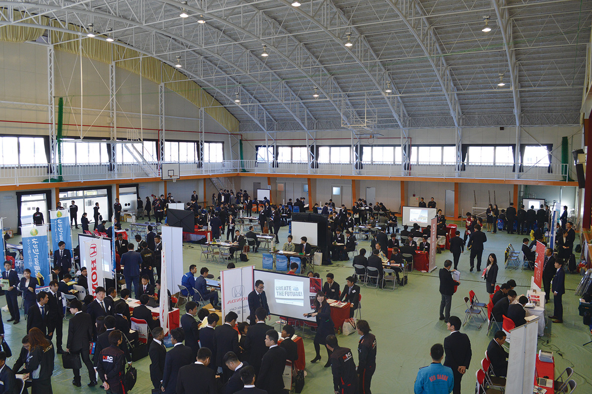 自動車整備だけでなく、開発・設計やレースメカニック、技術アジャスター等、幅広い就職先があり、自分にあった職種を探すことができます。学内で行われる企業説明会では、約200社の本学後援企業が来学します。