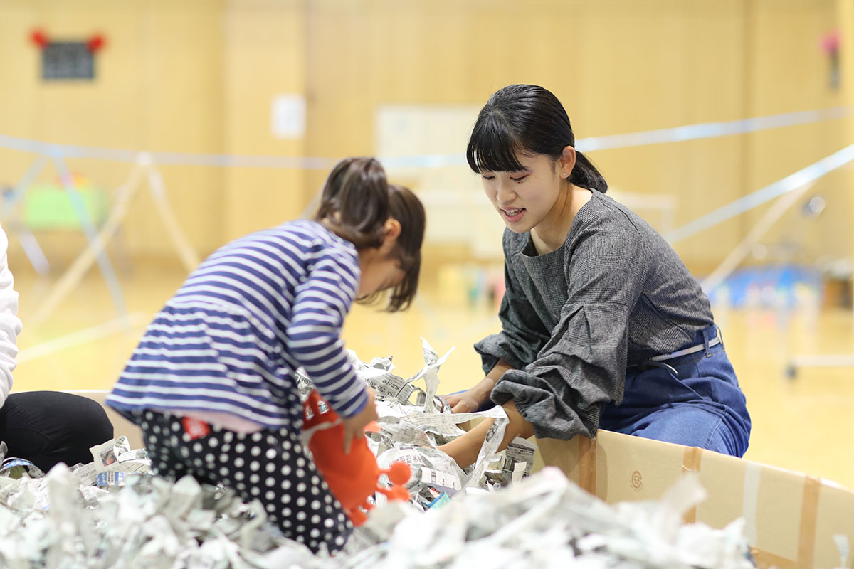 - 附属幼稚園と連携した実習が圧倒的に多いことに加えて、市の子育て支援活動などもあり、学びを実践につなげています。