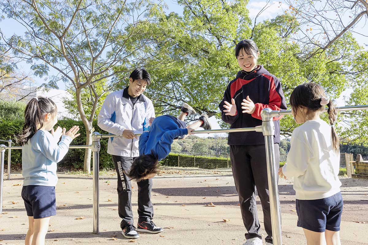 - 保育士・幼稚園教諭・小学校教諭・中学校教諭(保健体育)の4資格・免許に対応。こどもへの理解を深め、必要なスキルを修得します。